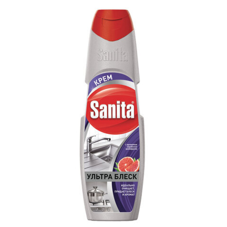 Универсальное чистящее средство SANITA Крем ультра блеск, 600г Крем SANITA ультраблеск разработан специально для очистки и защиты металлических и хромированных поверхностей.